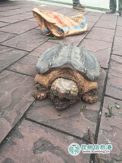 這只鱷龜和平時收容的鱷龜不是同一個品種,此次收容的是真鱷龜,屬外來物種,是世界上最大的淡水龜之一,成年大鱷龜可以長到200多公斤。由于它生存能力極強,是水域里較為強大的生物,所以不建議個人飼養或者是野外放生。云南野生動物收容拯救中心工作人員馮林貴說:“這只鱷龜是目前收容體積相對比較大的。鱷龜有攻擊性,如果把它放到湖泊或水域里,會對其它本土魚類造成威脅,破壞生態。”
